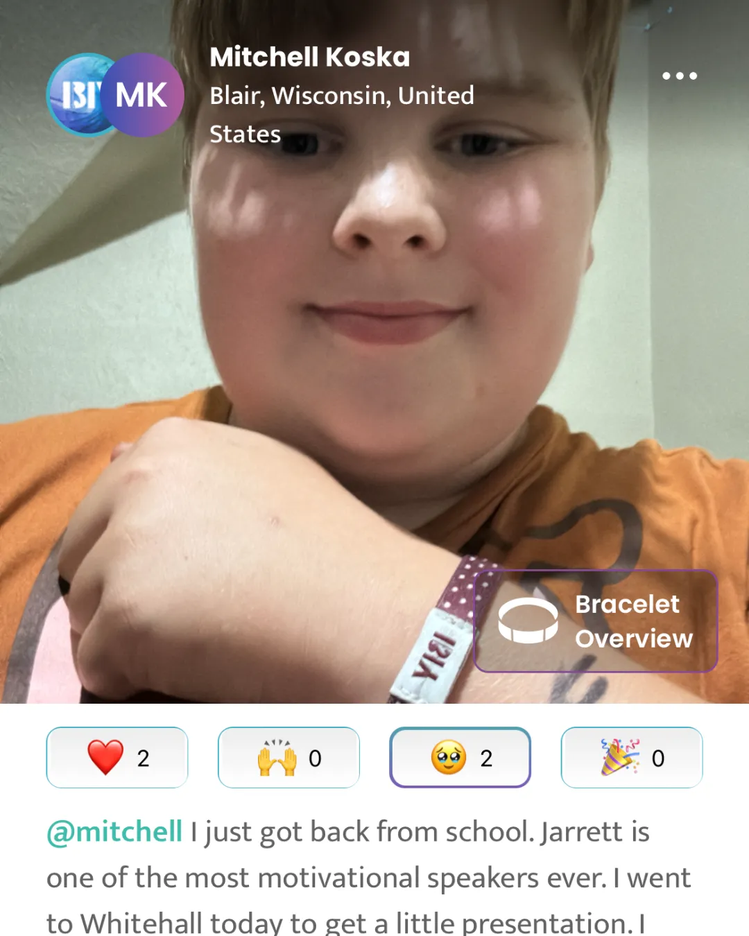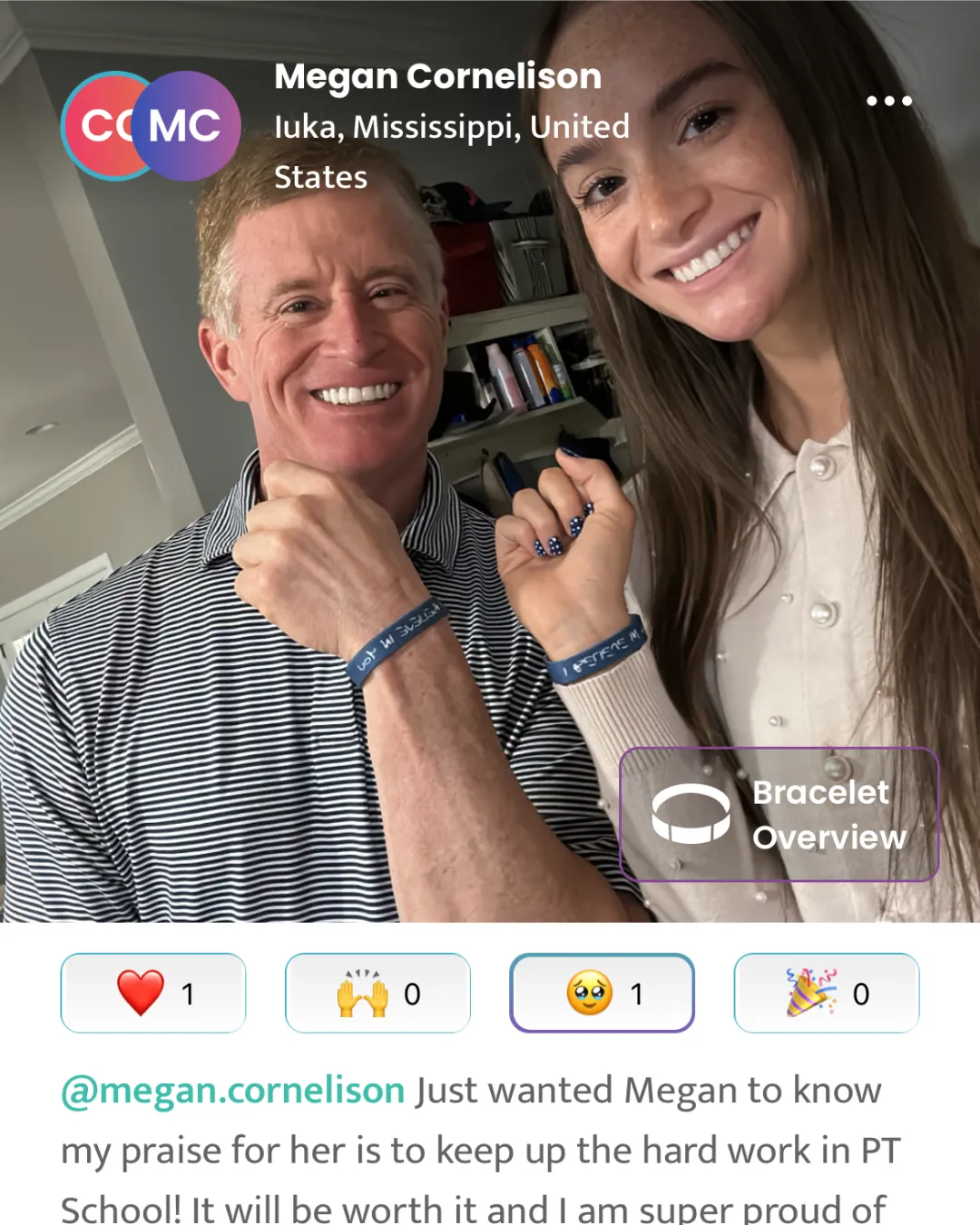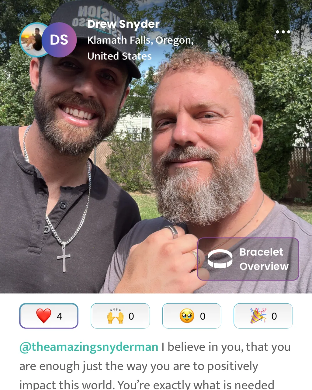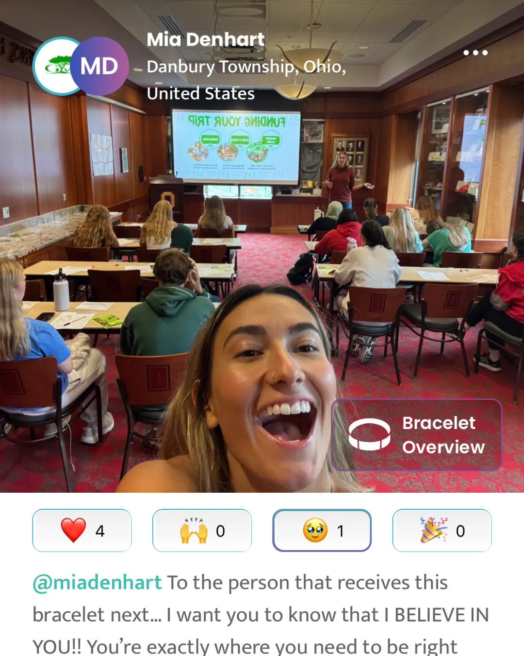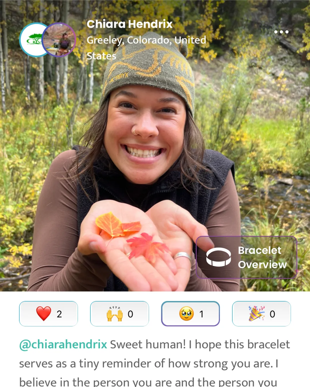 Each bracelet connects to the mobile app, allowing users to leave a positive message on their bracelet and watch the chain reaction of kindness unfold as bracelets travel from person to person around the world 💙